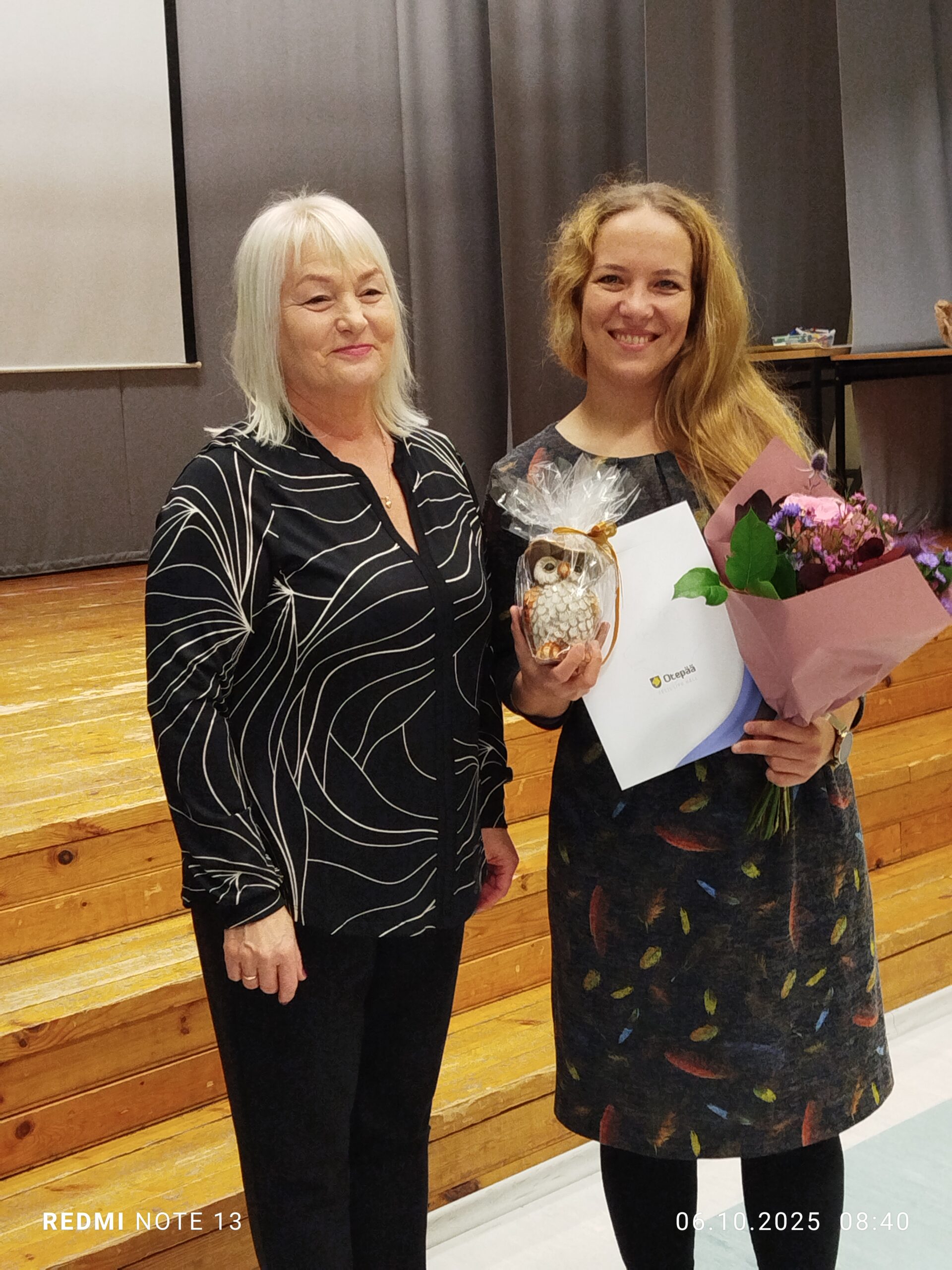 TÄNA OLID KÕIKIDES TUNDIDES NOORED ÕPETAJAD by Pille Kangur · 6. okt. 2025 Esmaspäeva, 6. oktoobri hommikul tervitasid õpetajaid 9. klass. Otepää valla aasta õpetaja tiitliga tunnustati õp. Kerli Kera ja õp. Kaili Ostraki. Valgamaa aasta õpetaja nominent on meie koolist õp. Tiina Kukk. Kiida kolleegi loosiõnn naeratas tänavu õp. Ailile. Kingituseks sai õp. Aili rändkäevõru. Direktori kt õp. Urve andis direktori vastutuse koos võimu sauaga üle noorele direktorile Ott Ostratile. Uus koolijuht tutvustas noori õpetajaid. Noorte õpetajate poolt olid õpetajatele kingituseks roosid. Ja algasid tunnid noorte õpetajatega. Pärisõpetajatel toimus samal ajal rühmatöö kooli väärtuste teemal. Ja filmimine, aga selle tulemust näete hiljem. Kena päeva lõpus kohtusime õp. Miiaga. Andsime talle üle kiidukirja ja medali poole sajandi pikkuse õpetajatöö eest. Aitäh 9.-ndale klassile toreda õpetajate päeva eest! Pille Kangur